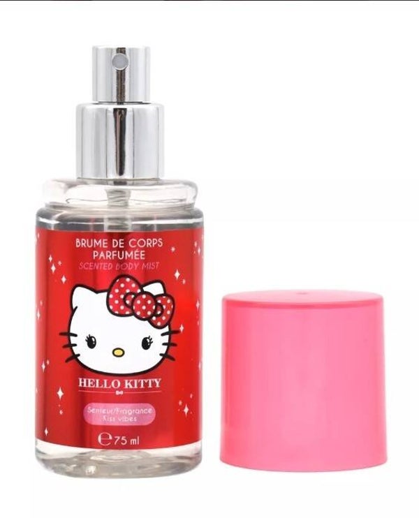 Scopri lo spray corpo Hello Kitty “Kiss Vibes”, un profumo dolce e accattivante che risveglia i sensi ad ogni spruzzo. Il suo formato da 75 ml ti permette di portarlo ovunque con te!