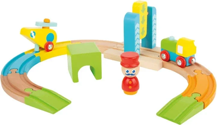 Small Foot - Set Trenino in Legno, con Locomotiva ed Elicottero